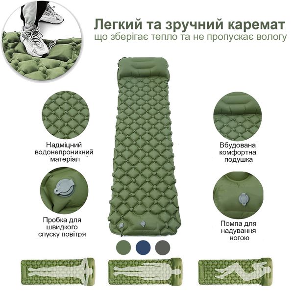 Армований надуваний каремат з подушкою